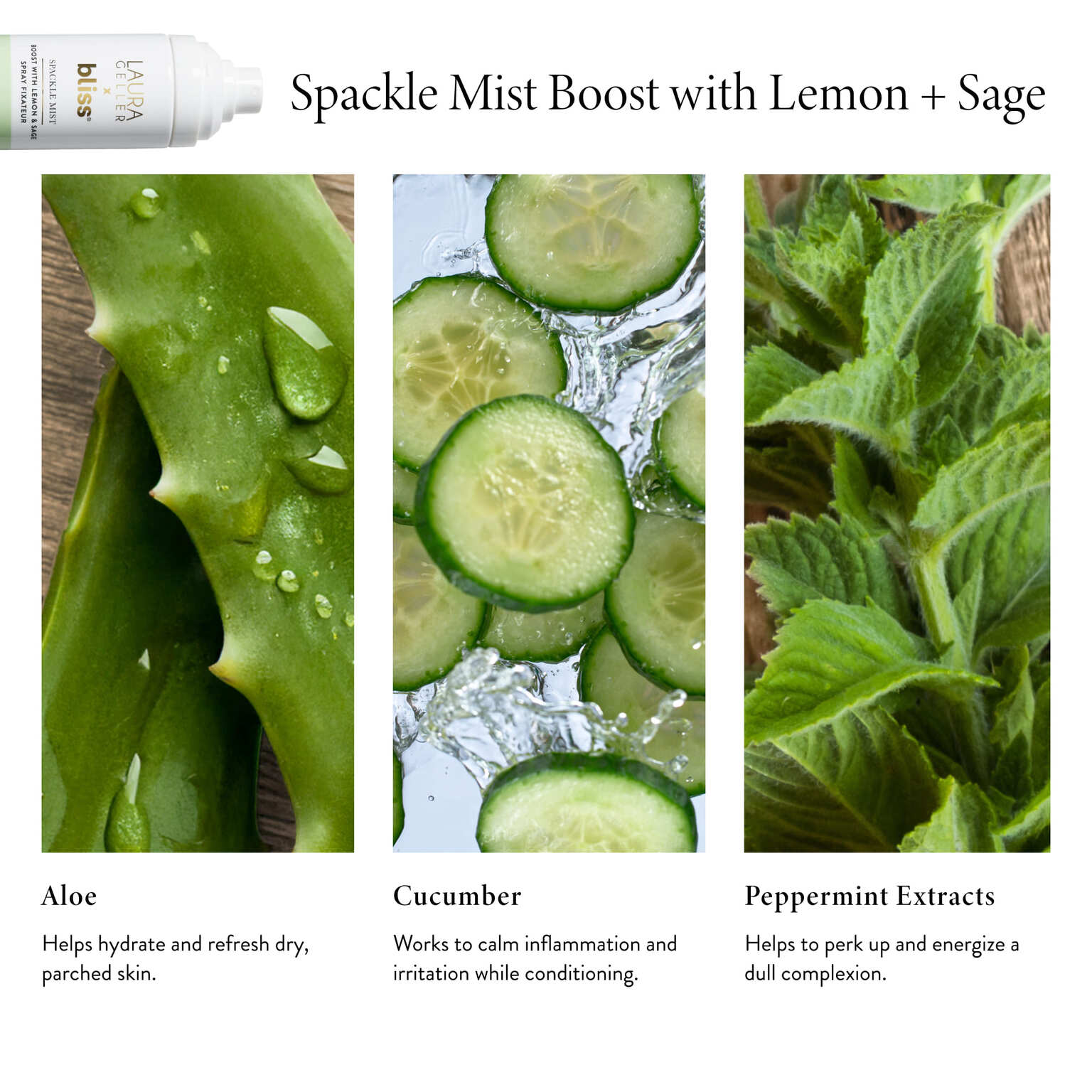 Enjoy a spa day in a spritz with our cooling and soothing Laura Geller x Bliss Spackle Mist Boost facial spray that’s so refreshing on a hot summer day.