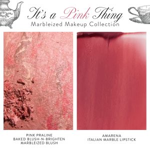 You can’t go wrong with our favorite color! This beautiful marbleized makeup collection includes two limited edition shades. celebrating Laura’s favorite color. Start with our Baked in Pink Praline to add a radiant. multidimensional pop of color to your cheeks. Next. swipe on the creamy in Amarena to blend swirls of pink pigments directly on your lips for an instantly custom look. Trust us. life is better in pink!