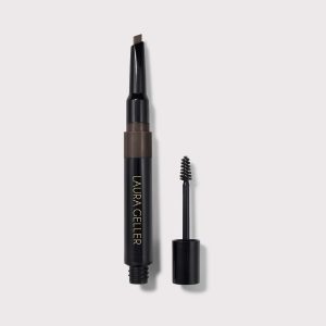 This two-in-one waterproof brow pencil and gel makes styling and shaping quick and effortless. The precision pencil tip allows for controlled. natural strokes to fill in sparse areas. while the gel visibly thickens and grooms brows into place without flaking. Create sculpted arches that last!